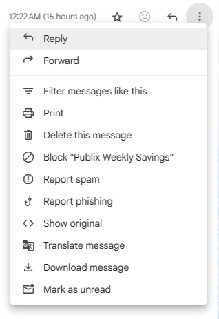 - Tap on the three dots in the right-hand corner of the email and select “filter messages like this”: