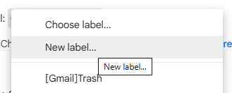 For now, we’re going to focus on setting up a label for this sender. Check the box next to “Apply the label:”. If you don’t have any labels set up before now, then click on the triangle next to “Choose label…” and select “New label…” from the menu that comes up: