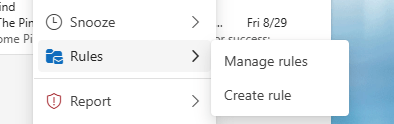 Creating rules in Outlook is very similar to the process of creating filters in Gmail as described above. The main thing you need to know is that the rule creation dialog can be found by right-clicking on any email:
